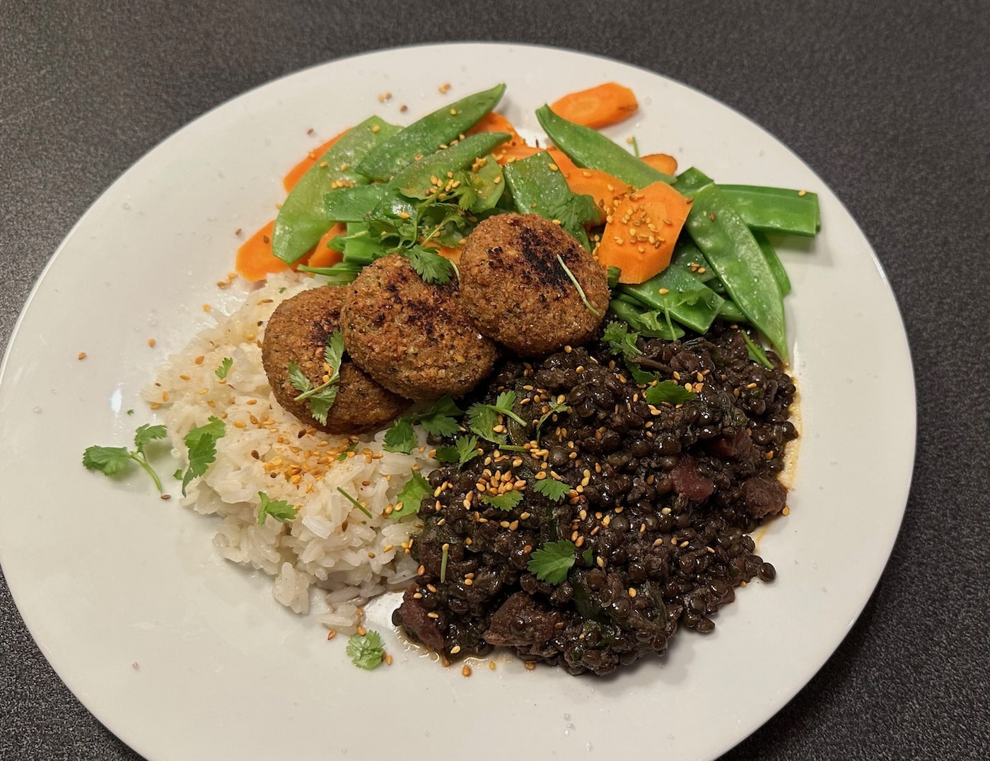 Alles aufkochen lassen und ca. 20 min bei leicht geöffnetem Deckel köcheln lassen bis die Belugalinsen weich sind. Ggfs. noch etwas Wasser nachgießen, wenn es zu dickflüssig wird.
