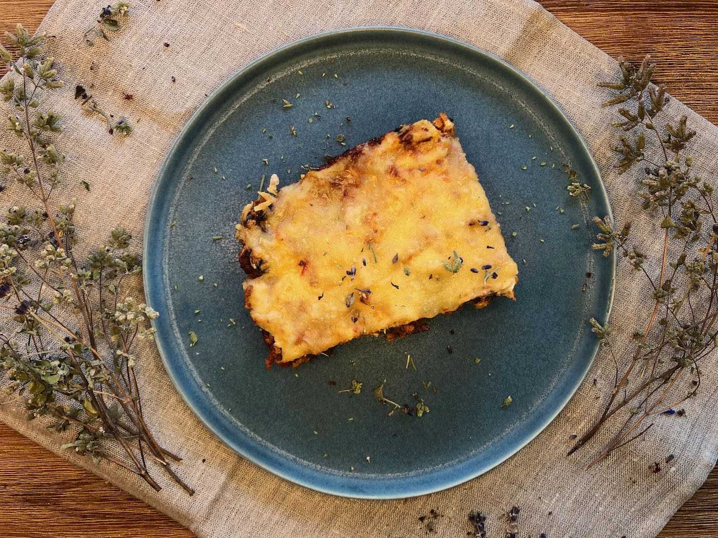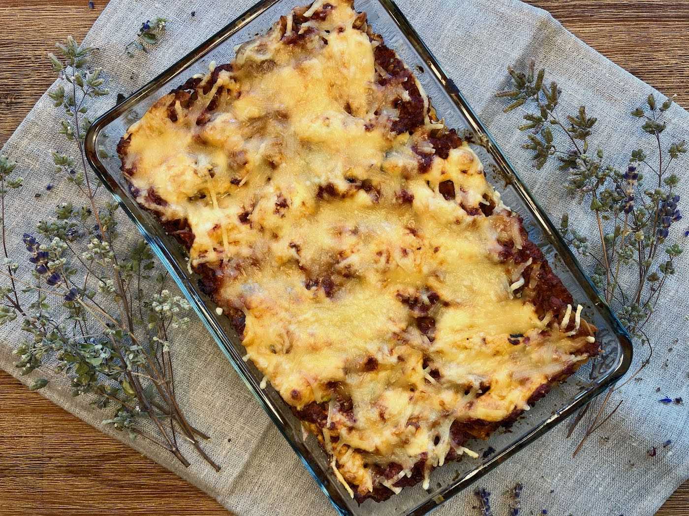 Bei 180 °C ca. 30 min im Backofen backen, bis der Käse schön zerlaufen und goldbraun ist.