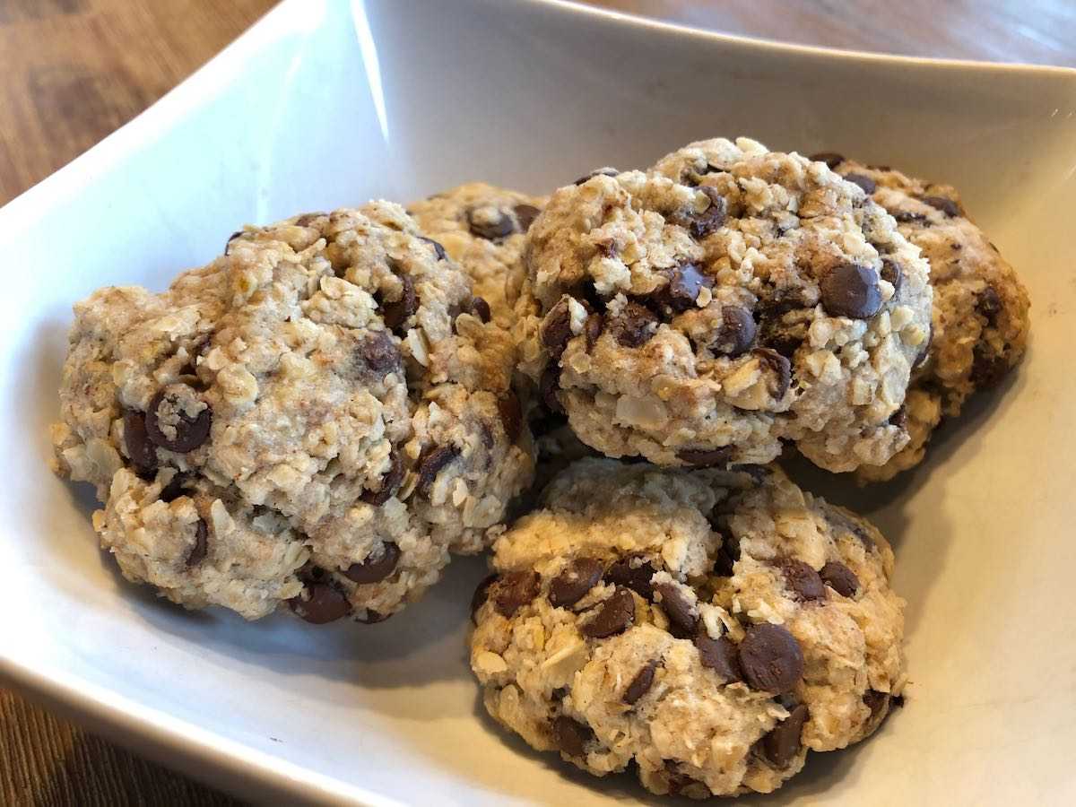 Alle Zutaten bis auf die Schokodrops in eine große Schüssel geben und alle gut miteinander verkneten. Dann die Schokodrops dazugeben und unterkneten.
