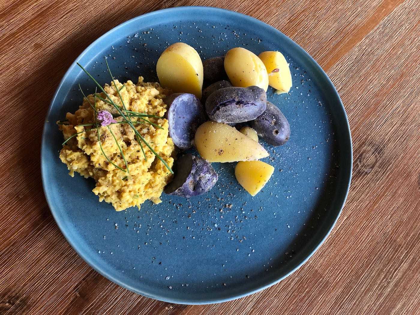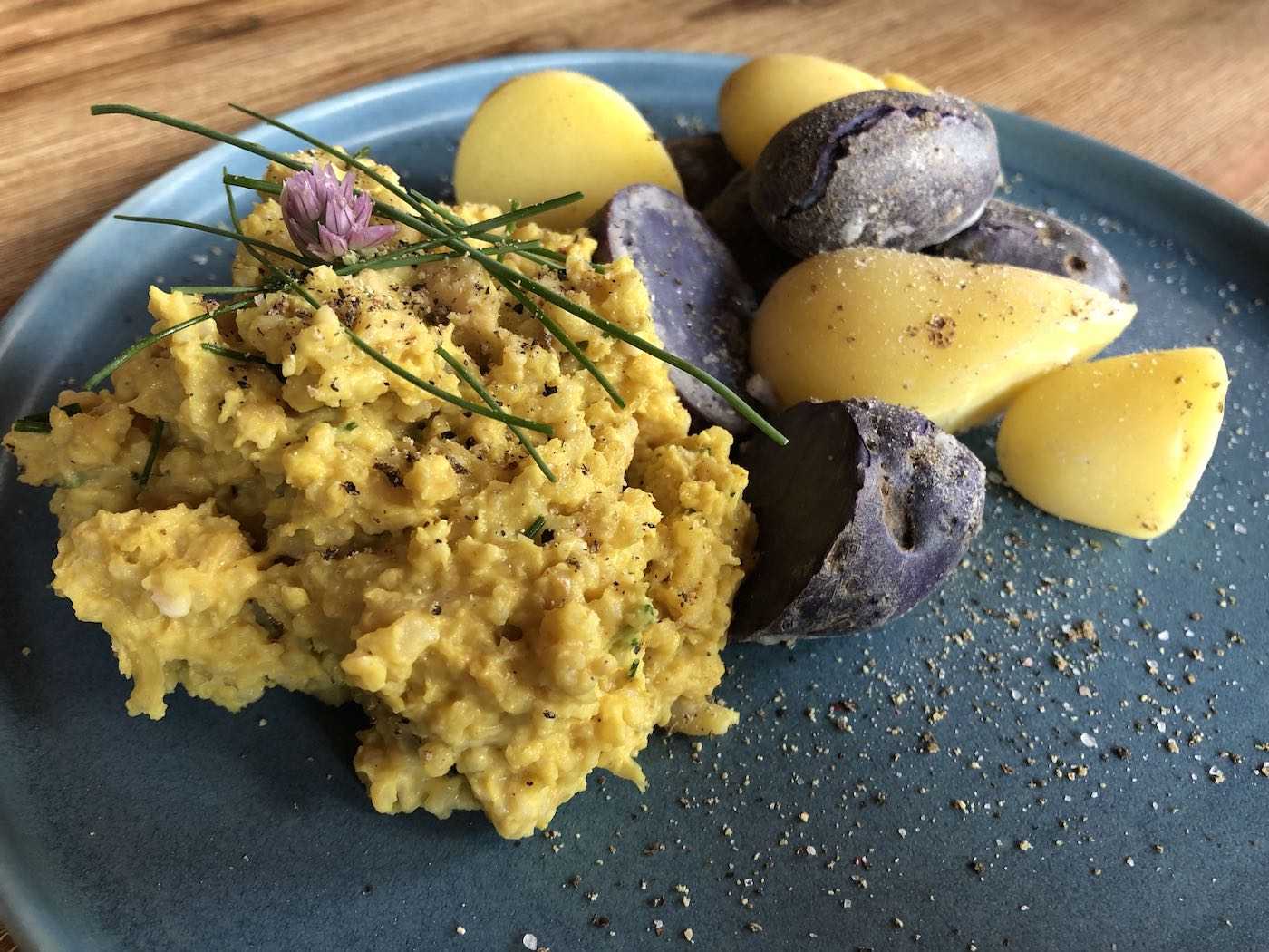Und der Kurkuma sorgt in diesem Salat für die typische gelbliche Eierfarbe.